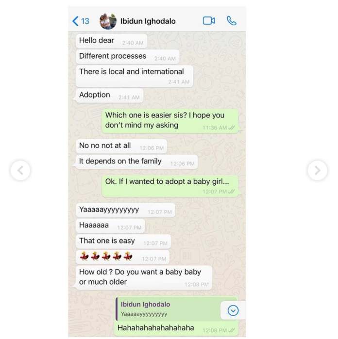 Omoni Oboli recounts how late Ibidunmi Ighodalo was to assist her with adopting a baby girl.
